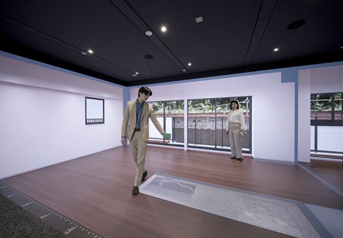 住まいが出来上がる前に間取りや家具配置、眺望確認を実寸大で体感できる、業界最先端で開発したリアルサイズスクリーンでマンションをご検討いただけます。