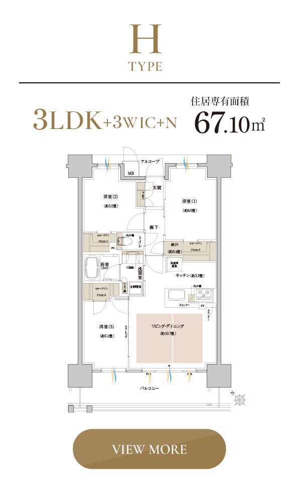 2LDK~3LDK56㎡台~81㎡台多彩なプラン