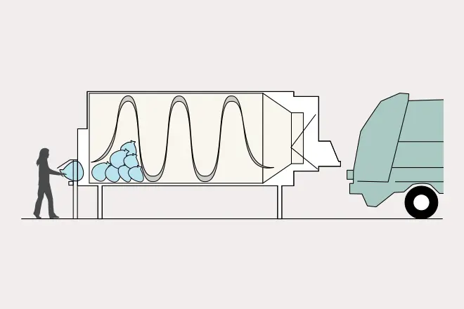マンション内のゴミステーションに、「ごみドラム」システムを設置。24時間いつでもゴミ出しが可能です。