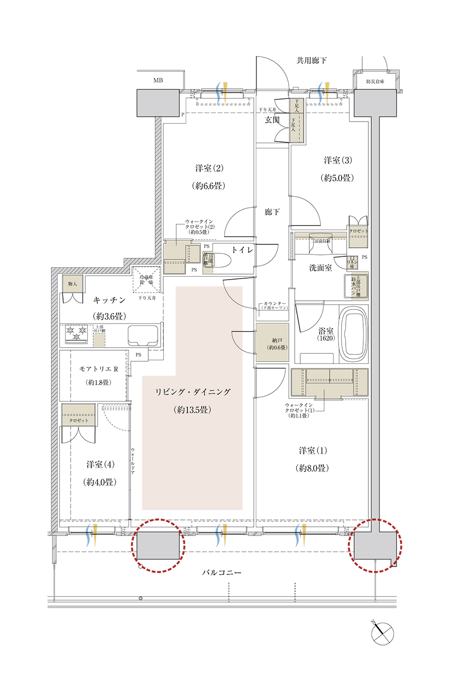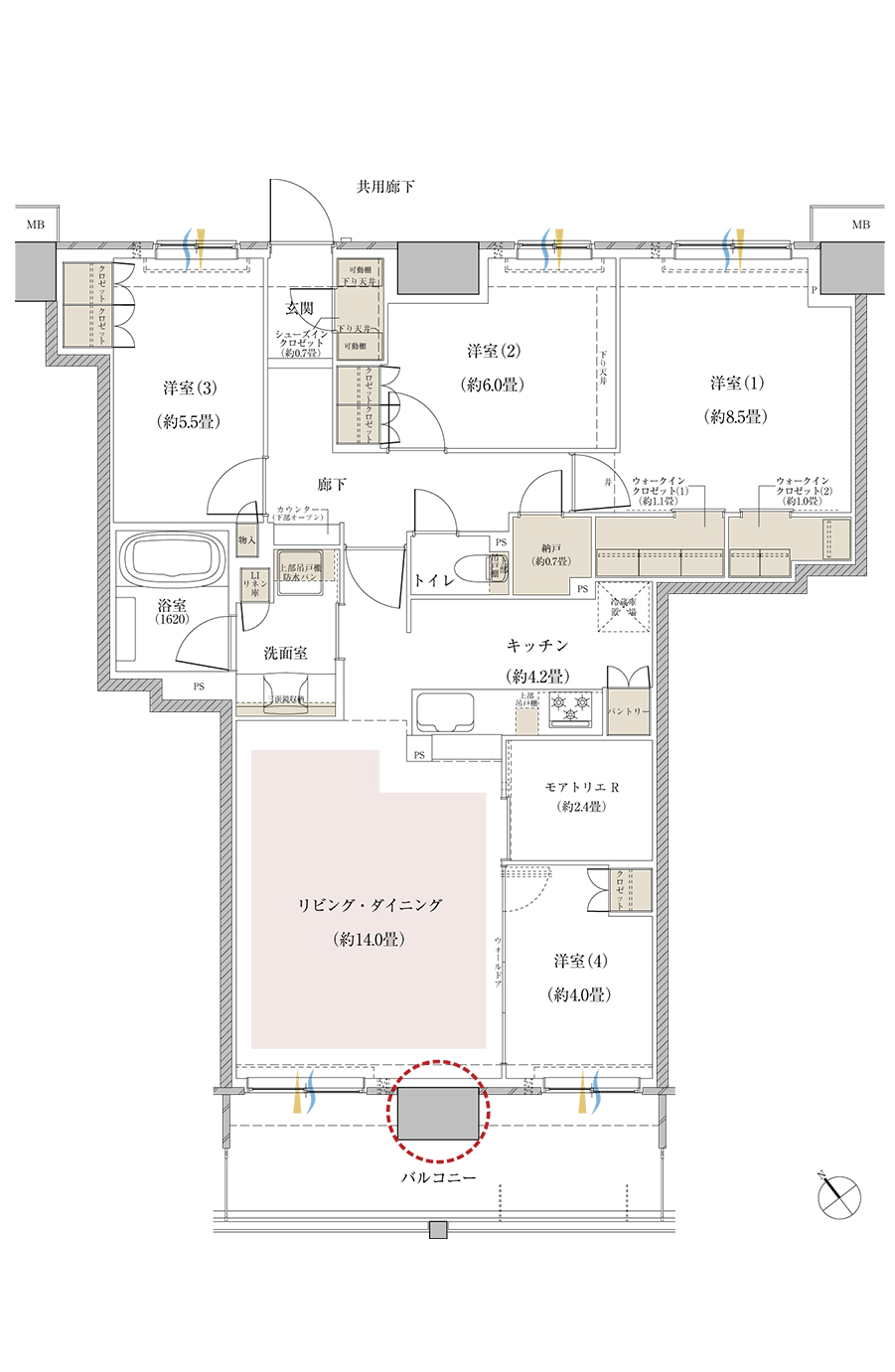 100㎡超のゆとりを活かした南西向き4LDKプラン。