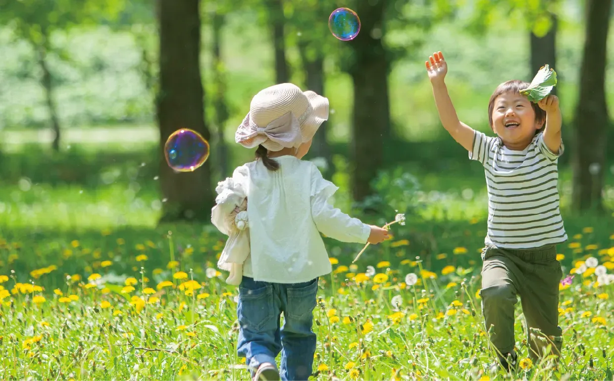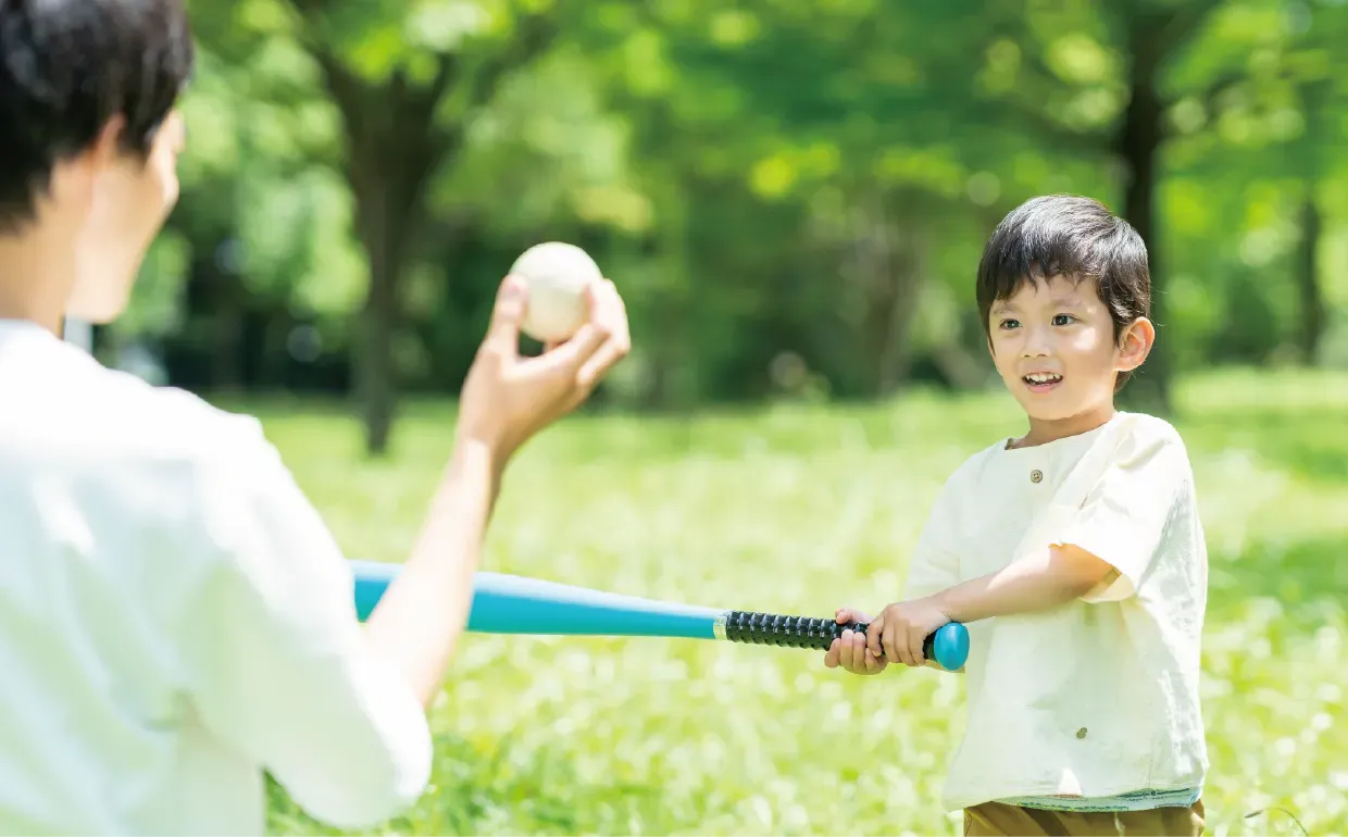 豊かな緑に恵まれた公園で、親子のひとときを。