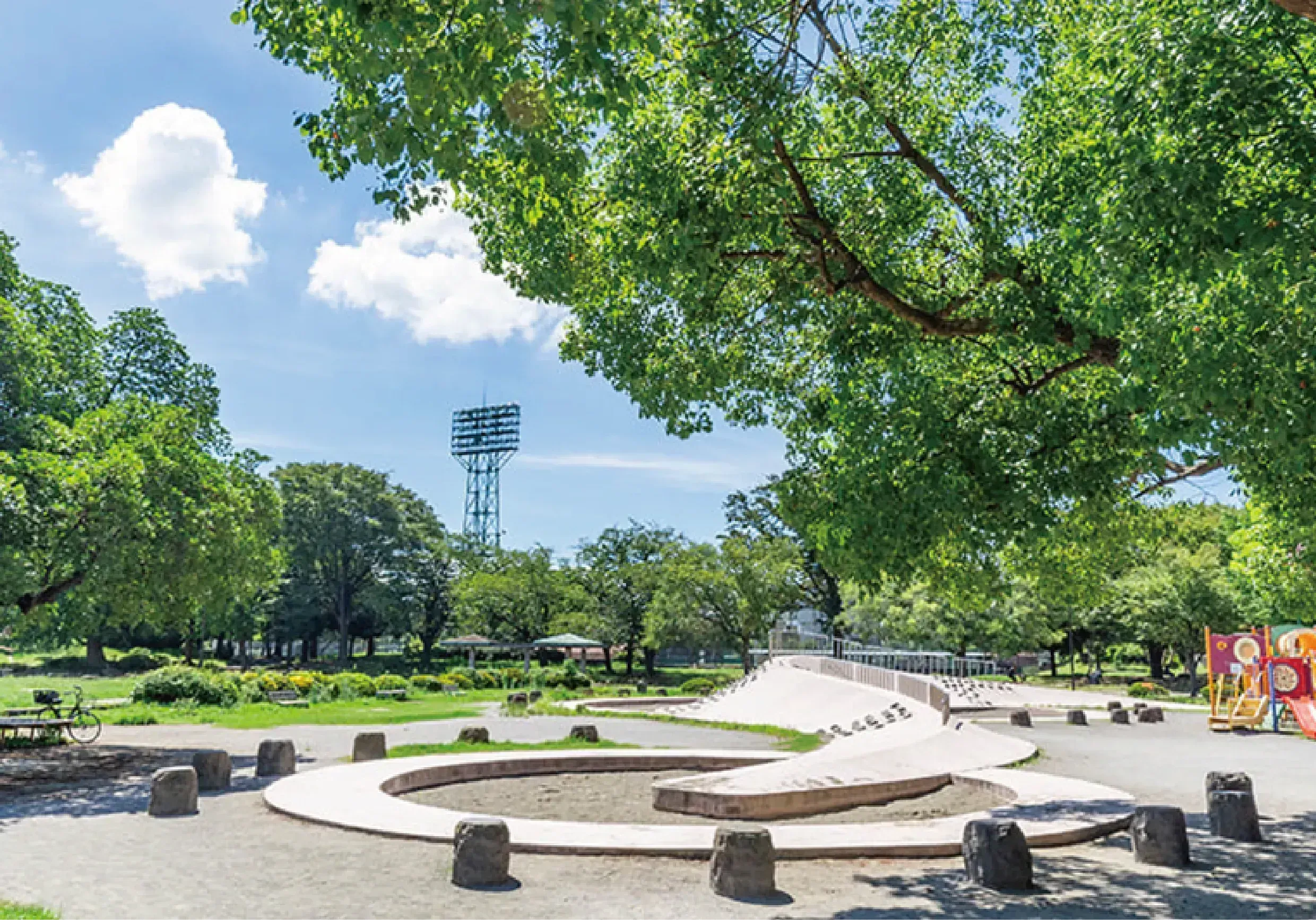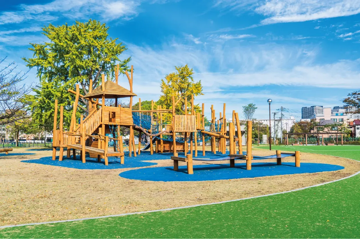 2024年10月にフルリニューアルした富士見公園。 園内にはサッカーなどスポーツ大会が開かれる「富士通スタジアム川崎」、 健康増進プログラムを開催する「かわQホール」をはじめ、 子どもたちが楽しめる9つの広場など、様々な施設が備えられています。