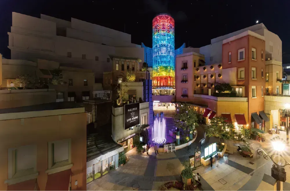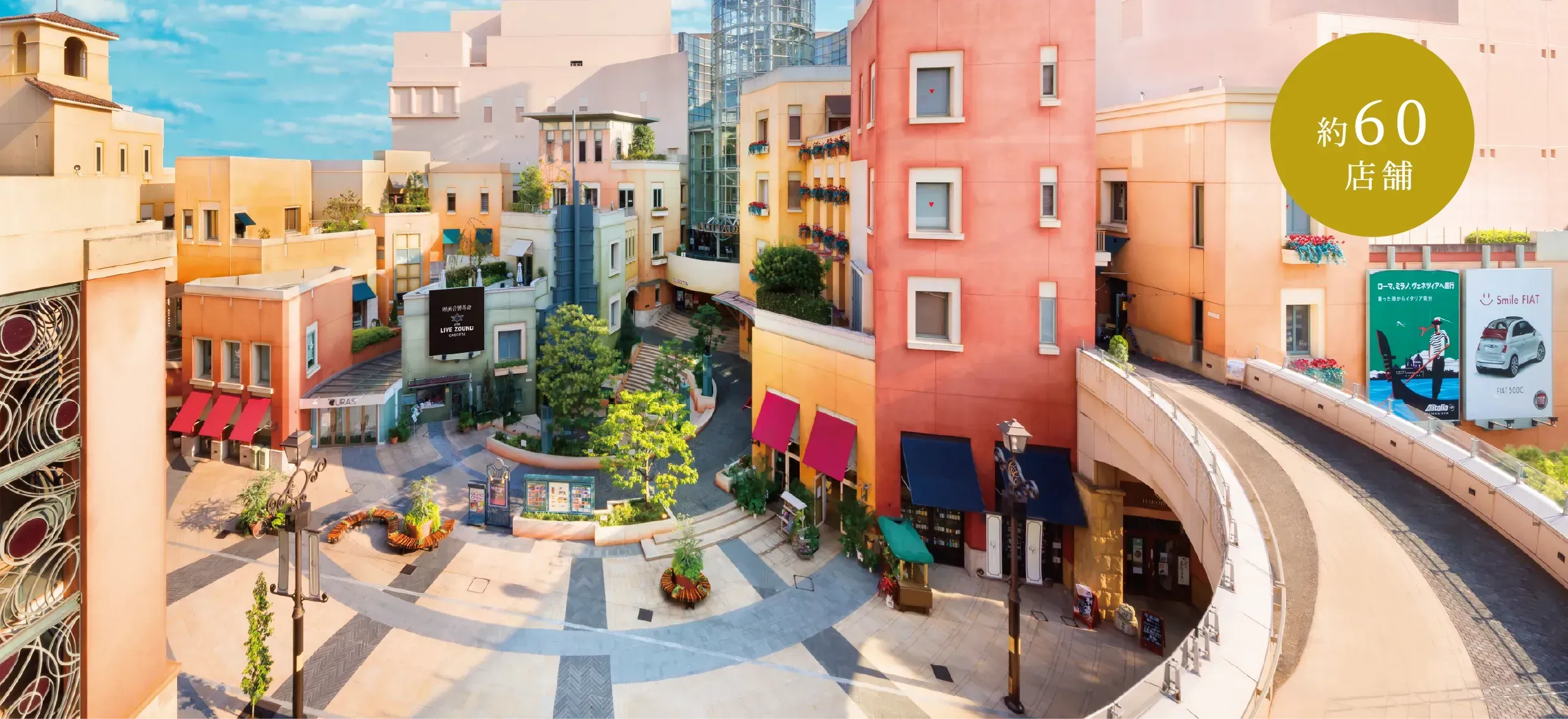 イタリアのヒルタウンをモチーフに作られたエンターテイメントの街。