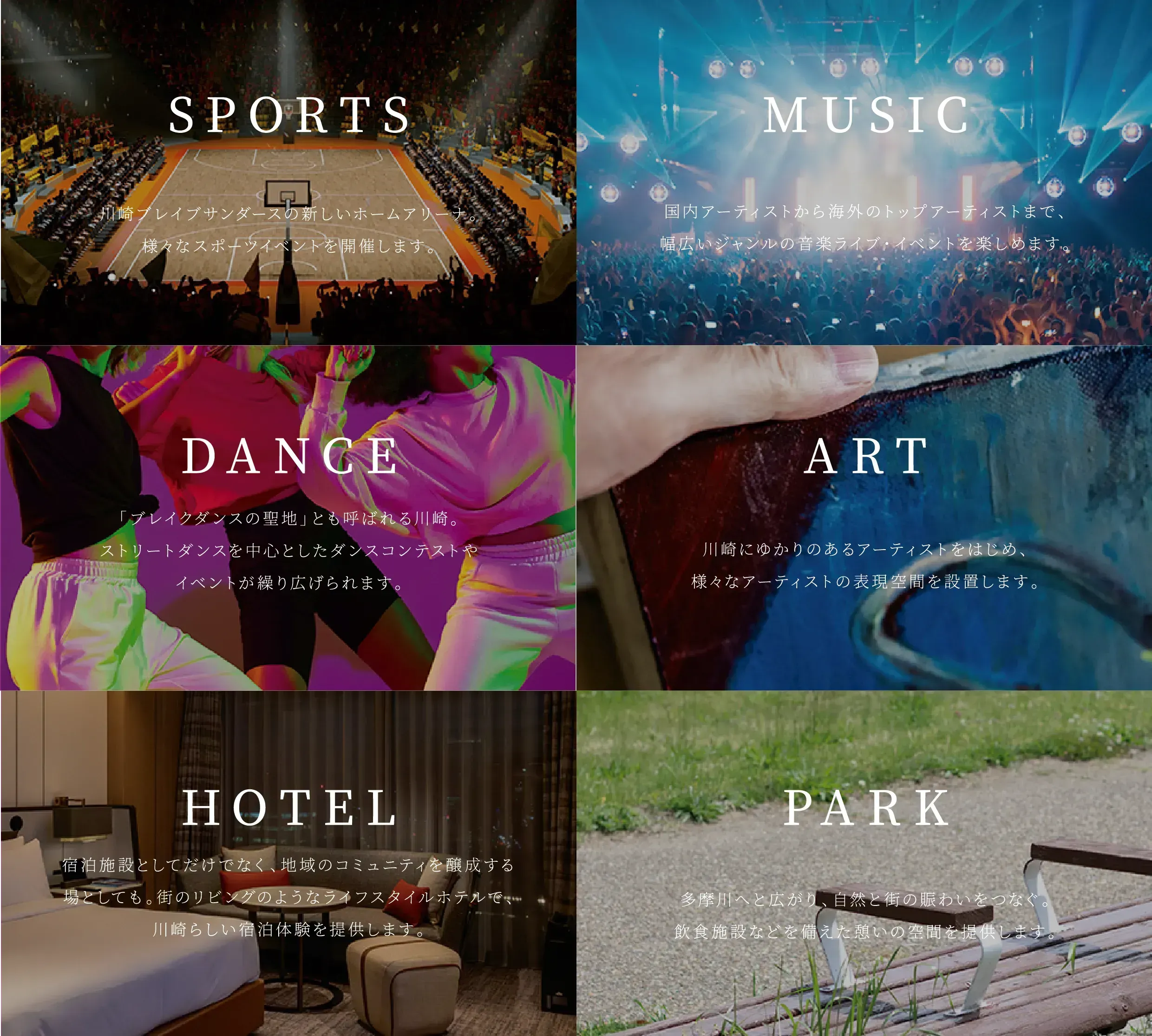 複数の施設からなり、映画・ライブ・ショッピング・グルメに加え、