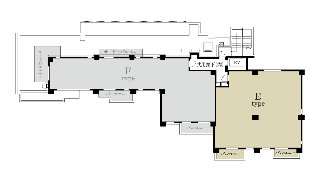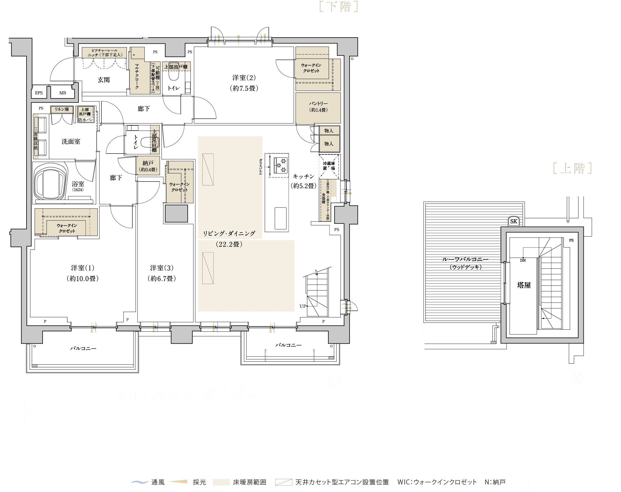 - 上階にはルーフバルコニーを設けた二層タイプ