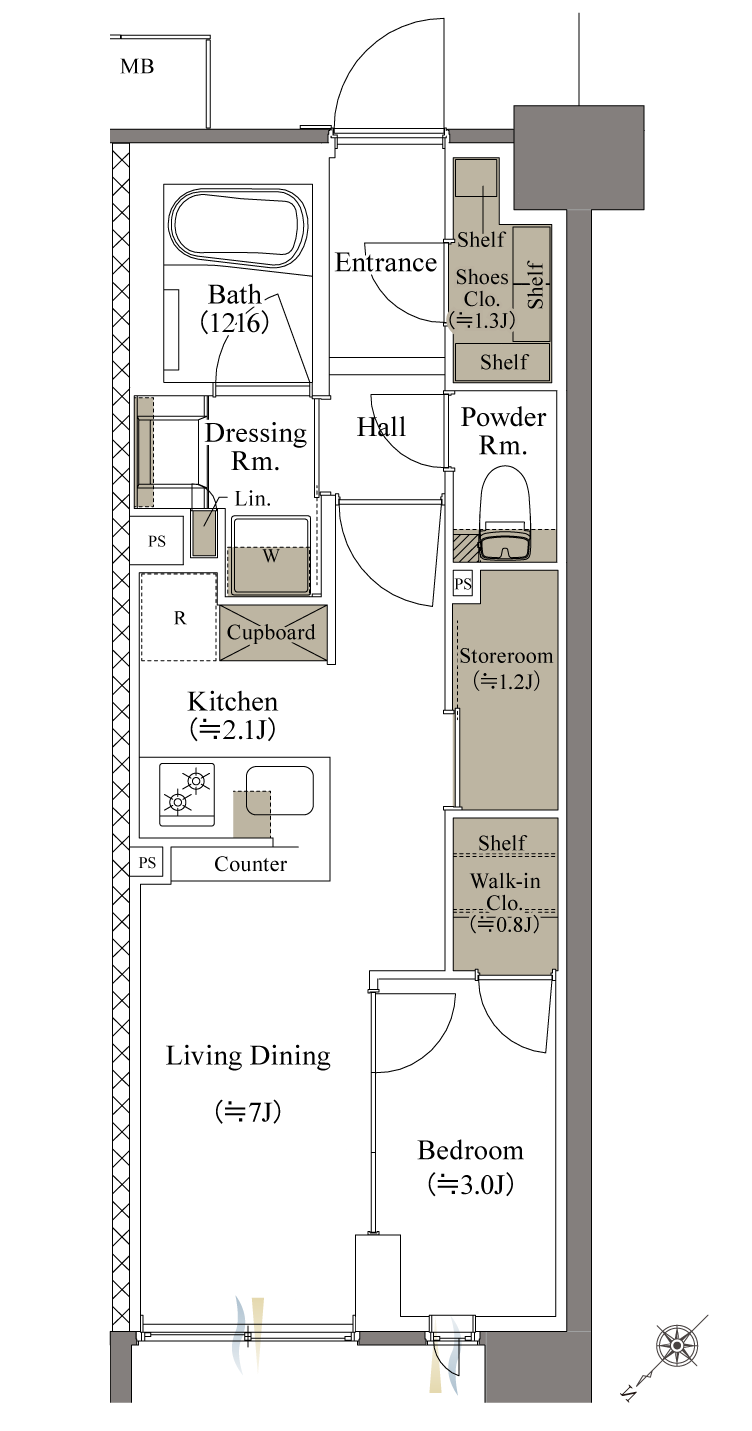 リビング・ダイニングの室内側に柱型が出ないアウトフレーム設計を採用。空間が広々となり、家具を置く際のデッドスペースが減らせるためスペースを有効活用できます。