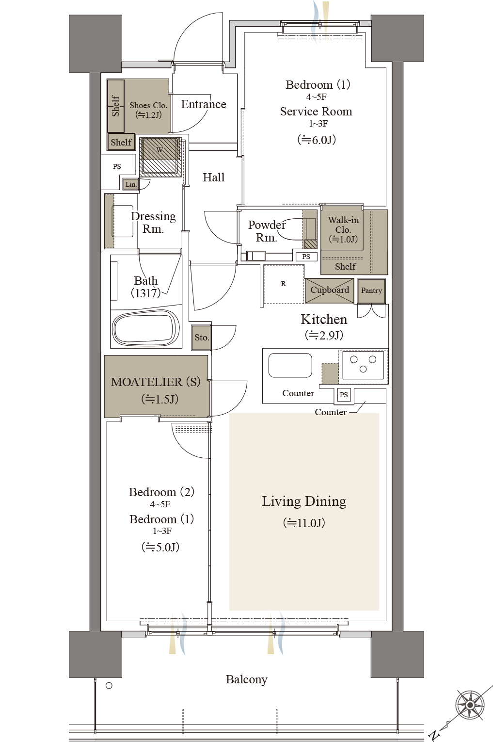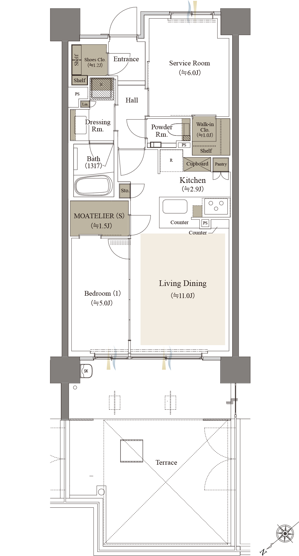 仕事や勉強、趣味や家事に没頭できる多目的スペース[モアトリエ]をご用意。ダウンライトやマルチメディアコンセントを完備し使い方や感性に合わせて、思い思いの個性ある空間を創造できます。