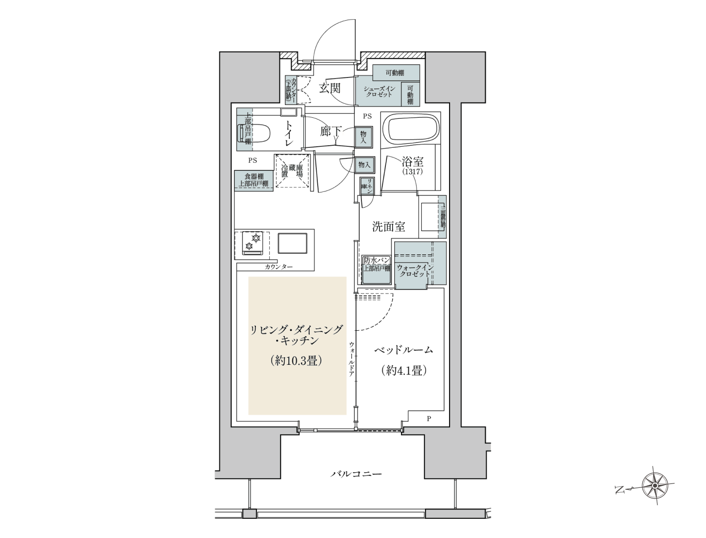 ※掲載の図面は、計画段階のもので変更になる場合があります。詳細は図面集をご参照ください。また、基準階住戸を描いたもので、バルコニーや窓の形状・柱型・壁厚の形状及び有無については、階数や施工上の都合により一部異なるもしくは変更が生じる場合があります。