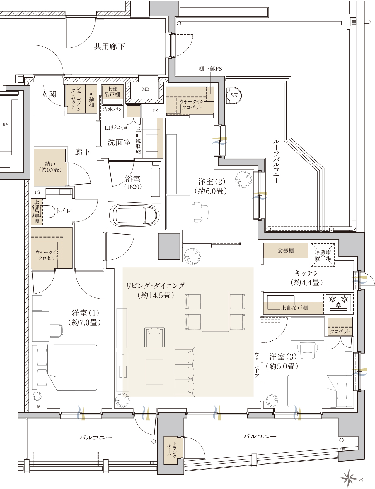 ※掲載の間取りイラスト、スマートサイホン概念図は、計画段階の図面を基に描き起こしたもので、実際とは多少異なります。施工上の都合により、多少変更になる場合があります。予めご了承ください。また、住戸により仕様・形状が異なる場合があります。家具・植栽・調度品・バルコニータイル等は配置の一例で販売価格には含まれません。
