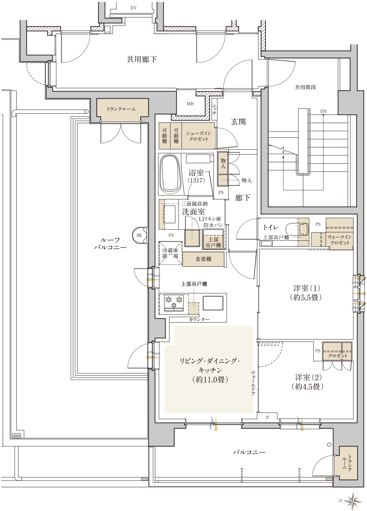 56.54m²(約17.10坪) (トランクルーム面積を含む)