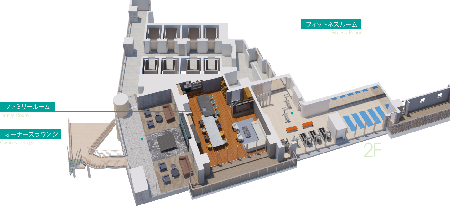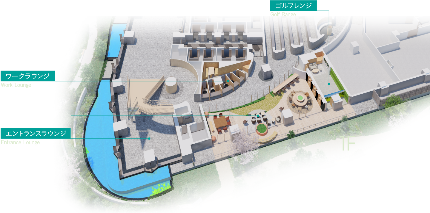 集中して仕事を進めたい時は、個室のワークスペースへ。ラウンジやゴルフレンジでは、リラックスして優雅な時を。新しい暮らし方をかなえる様々な共用空間をご用意しました。