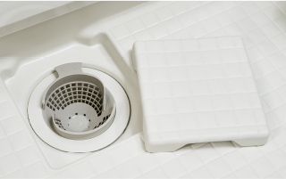 ゴミや髪の毛にふれずに、ポイっと簡単に捨てられるお掃除が楽な排水口です。