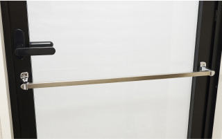 室内への通風と採光の取り入れを可能にし、外からの視線を遮ることができるプライバシーに配慮したルーバー面格子を廊下側に採用。