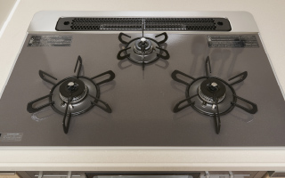 3口コンロガスコンロは広々使える3口コンロを採用しました。複数の料理を同時に作れるため、時間を有効活用することができます。