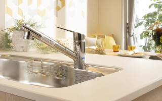 キッチンのカウンタートップには、耐久性とインテリア性を考慮した人造大理石を採用しています。キズや汚れが付きにくくお手入れがカンタンです。