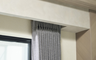 カーテンレールを見えにくくし、窓辺の美観を向上させるカーテンボックスをリビング・ダイニングの開口部に採用。(※一部開口部除く)
