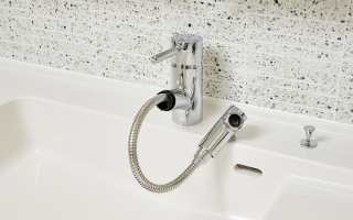 吐水口を引き出せるシングルレバー水栓を採用しました。ヘッドが引き出せるので、洗面ボウル内を隅々まで快適に洗い流せます。