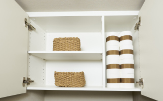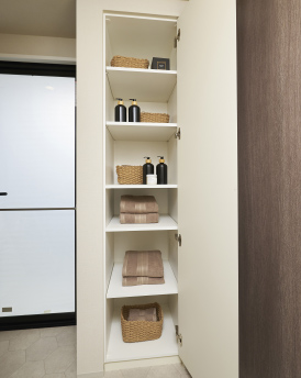 タオルなどの収納に便利なリネン庫を全戸に装備。洗面台まわりをきれいに片付けられます。