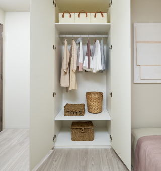 ジャケットやコート類、収納ケースなどをたっぷり収納できるウォークインクロゼットを設置しました。お部屋を広く活用することができます。