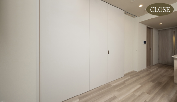 引き戸を開けば、リビングを広々と使え、閉めれば部屋を2つに分けることができるので、パブリックゾーンとプライベートゾーンを使い分けることができて便利です。(※一部タイプ除く)