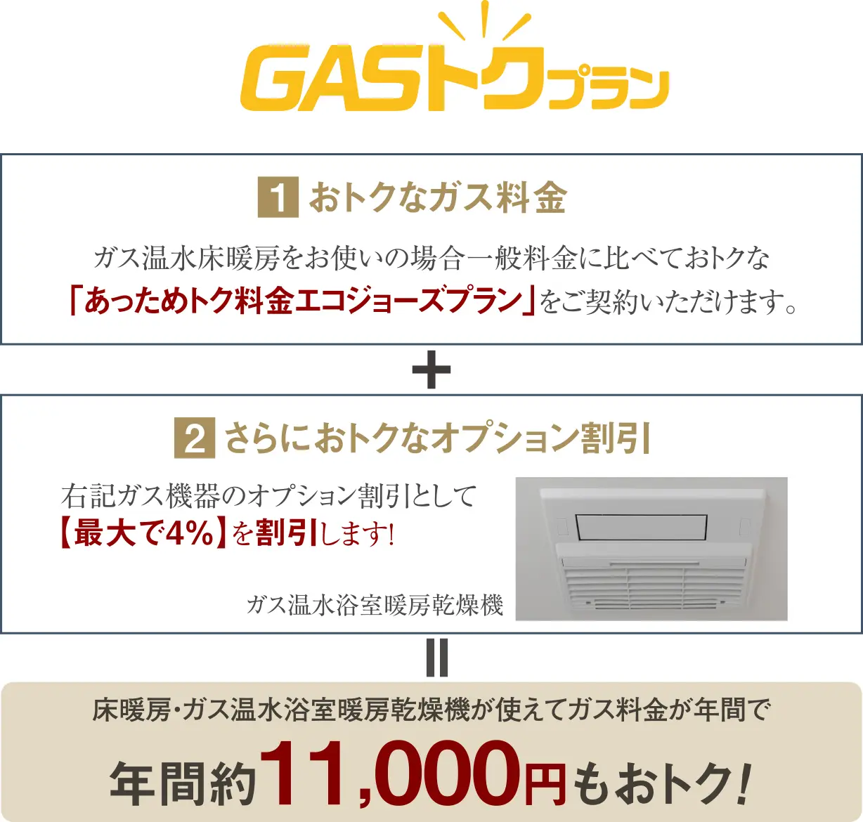 おトクな料金プランで家計にやさしい「GAS得プラン」。